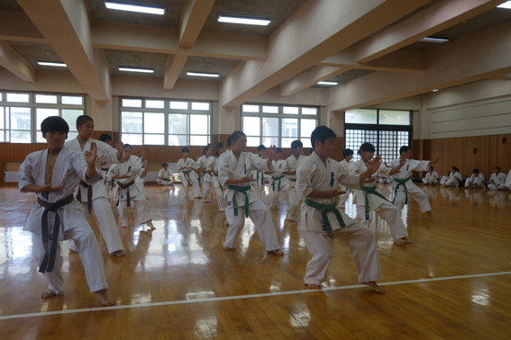 2015年6月20日(土)・21日(日)、静岡市清水区三保にて上級者合宿が開催されました。 大石代悟範士の号令・指導の元、1都4県から集った80名の参加者が二日間に亘り、 初心に帰り、約11時間の稽古を行いました。一日目は基本稽古、型、審判講習会。 二日目は、基本・型の反復の後、参加者全員参加で50ラウンドの組手。全員が完遂し、 二日間の充実した稽古を終えました。