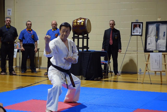 大会の中では、大石範士が型と試し割(足技・正拳・手刀・肘)の演武を披露。会場を埋めた多くの観衆・関係者から、大きな拍手が起こりました。